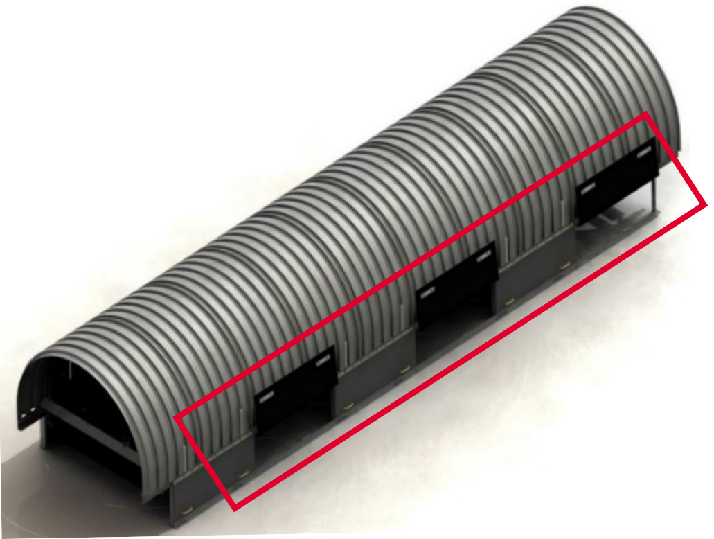 - 1) Rubber Cover Plate를 장착 할 수 있도록 Conveyor Line Return부 양쪽 측면에 설치